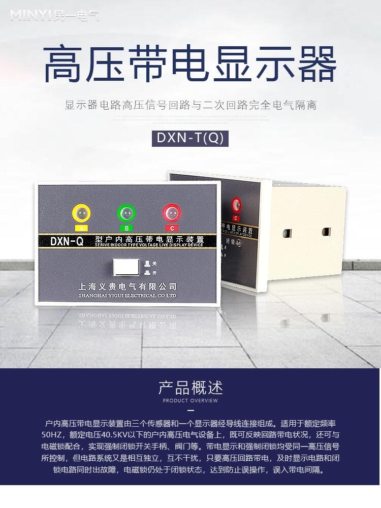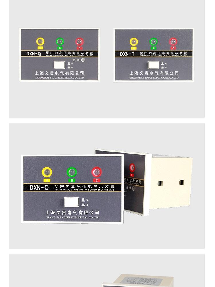 DXN-T高压带电显示器(提示型)、DXN-T-II高压带电显示器(提示型)、DXN-Q高压带电显示器(强制闭锁型)、DXN8D-T(Q)高压带电显示器(带验电)、DXN-T高压带电显示器(带自检、带验电)、