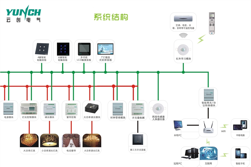 5、采用CAN-BUS总线通信协议,手拉手并联方式以实现灵活连接、稳定控制,无需服务器,通过主机可实现远程控制开关。安全可靠,安装操作方便;