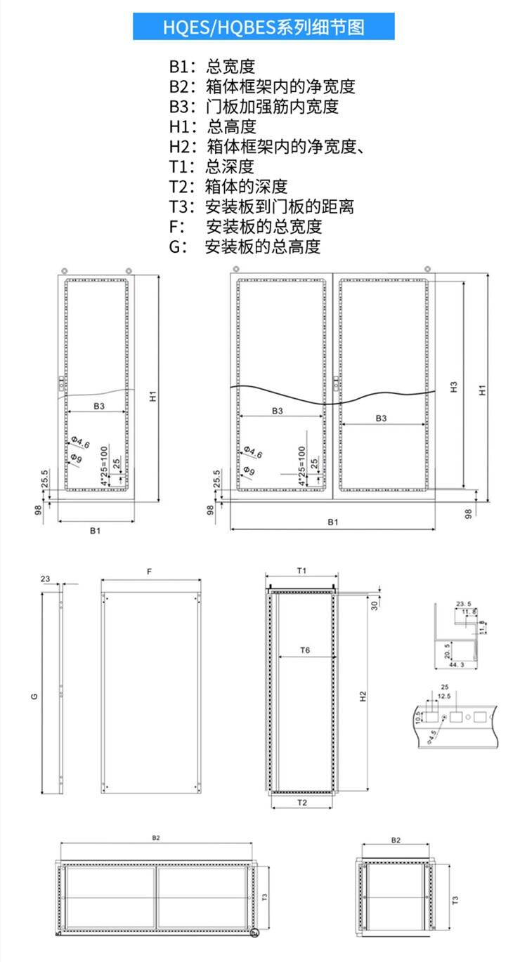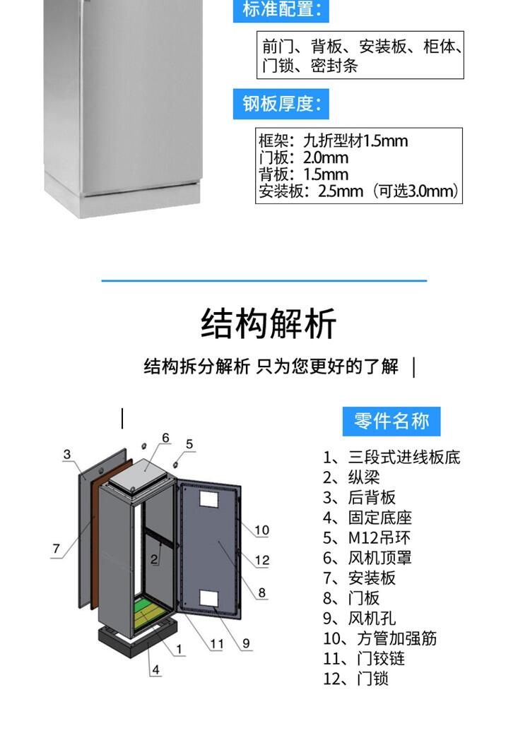 标准配置:前门、背板、安装板、柜体、门锁、密封条