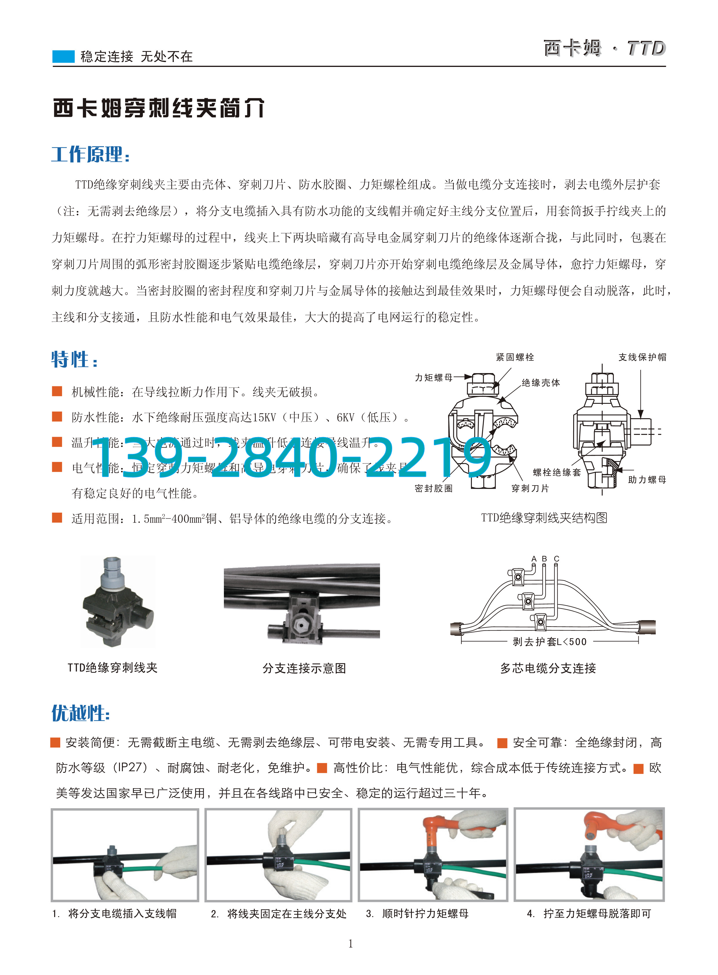 1.安装前请再次确认,绝缘穿刺线夹是否与现场电缆截面匹配!