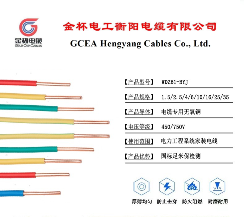【WDZB1-BYJ】金杯品牌纯铜低烟无卤阻燃硬线家装电源线