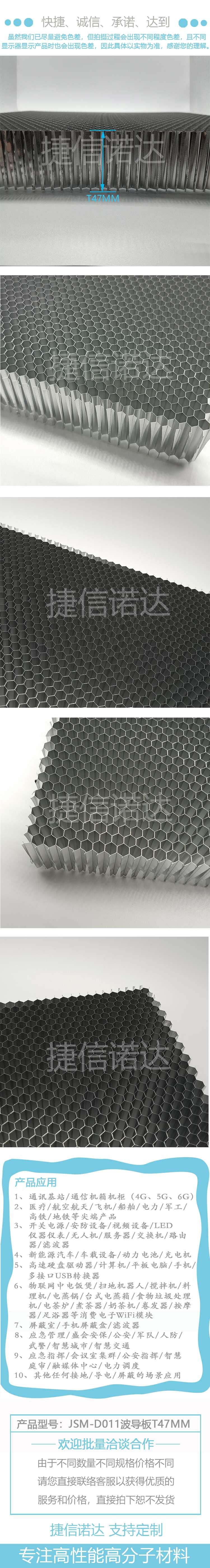 在屏蔽设计中使用的是截面为六边形的截止波导构成的蜂窝状通风孔,又称蜂窝波导板。这样的波导板可以形成很大的通风面积,同时又能够有效的防止电磁辐射干扰。根据波导原理设计的蜂窝状通风屏蔽产品。在达到电磁屏蔽效果的同时,可以有很好的通风效果和尘埃过滤功能。截止波导板有铝制和钢制两种,铝制波导板具有通风量大、重量轻、抗电化腐蚀性能较好的突出优点。