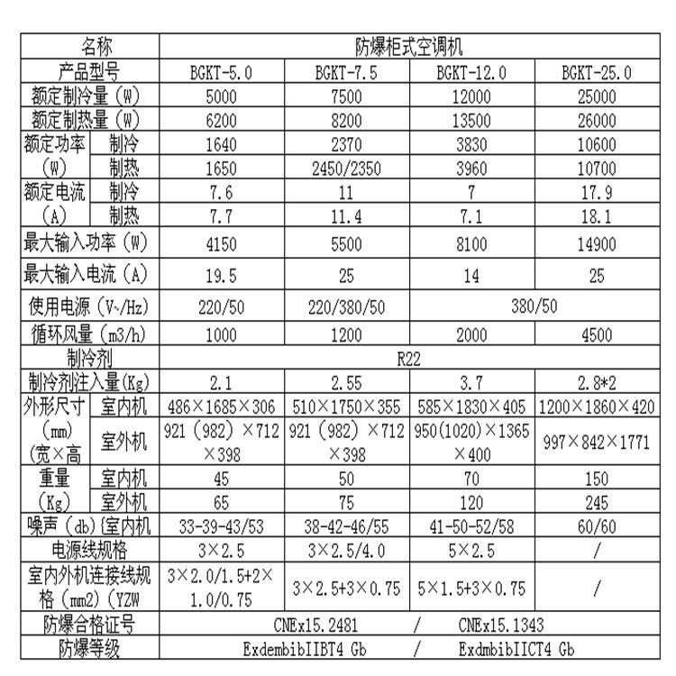 3、使用有,要求严格按照防爆GB3836.15《性气体用电气设备第15部分:危险场所电气安装(煤矿除外)》规定,按对应的场所选择符合规定的防爆设备。现有防爆分体机、防爆柜机只能用于2区。从使用角度,我们建议只在2区使用防爆空调,要求使用的场所有良好的通风。