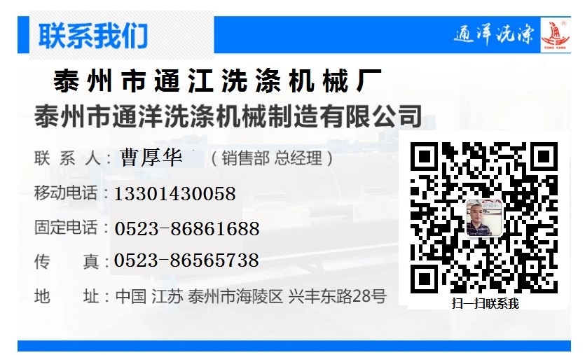 泰州通江洗涤机械生产的水洗设备,种类多,可选择性较强,尤其是水洗机系列中的变频全自动工业洗涤脱水机,采用了力学防震结构,配以液压阻尼器,实现了超低震动,采用变频驱动 速度调节平滑、灵活、噪音低、洗涤高脱过度平稳,无需打地基。受到了众多酒店、宾馆等企业的青睐。