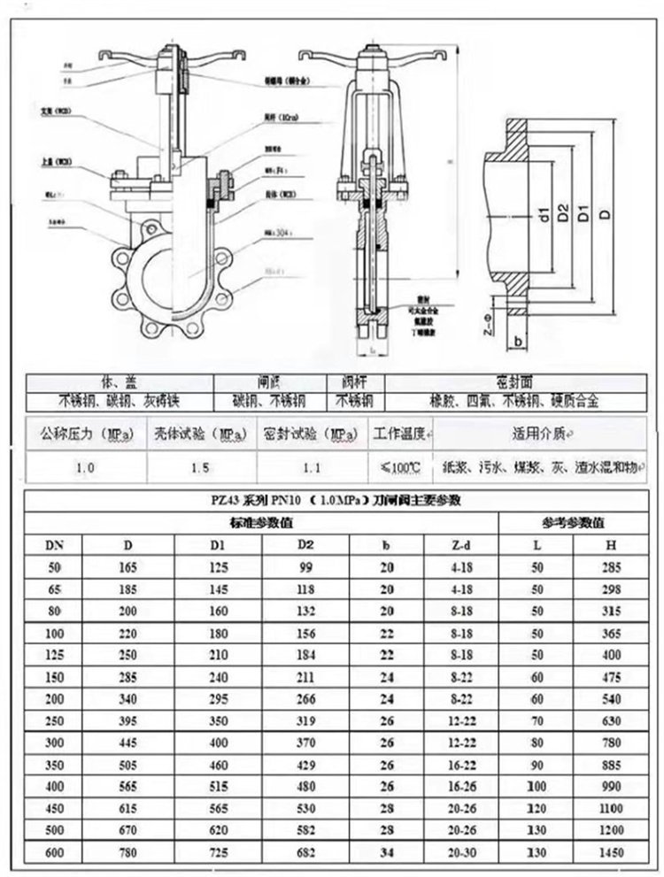 | 型号 | PZ73W-10Ti钛合金刀闸阀 | ||