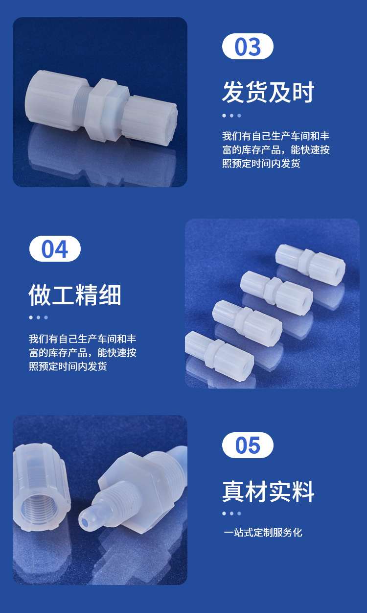 | PFA/PTFE/PVDF变径直通 扩口直接接头 规格齐全 材质可选 金沐霖 是否支持加工定制 | 是 | ||