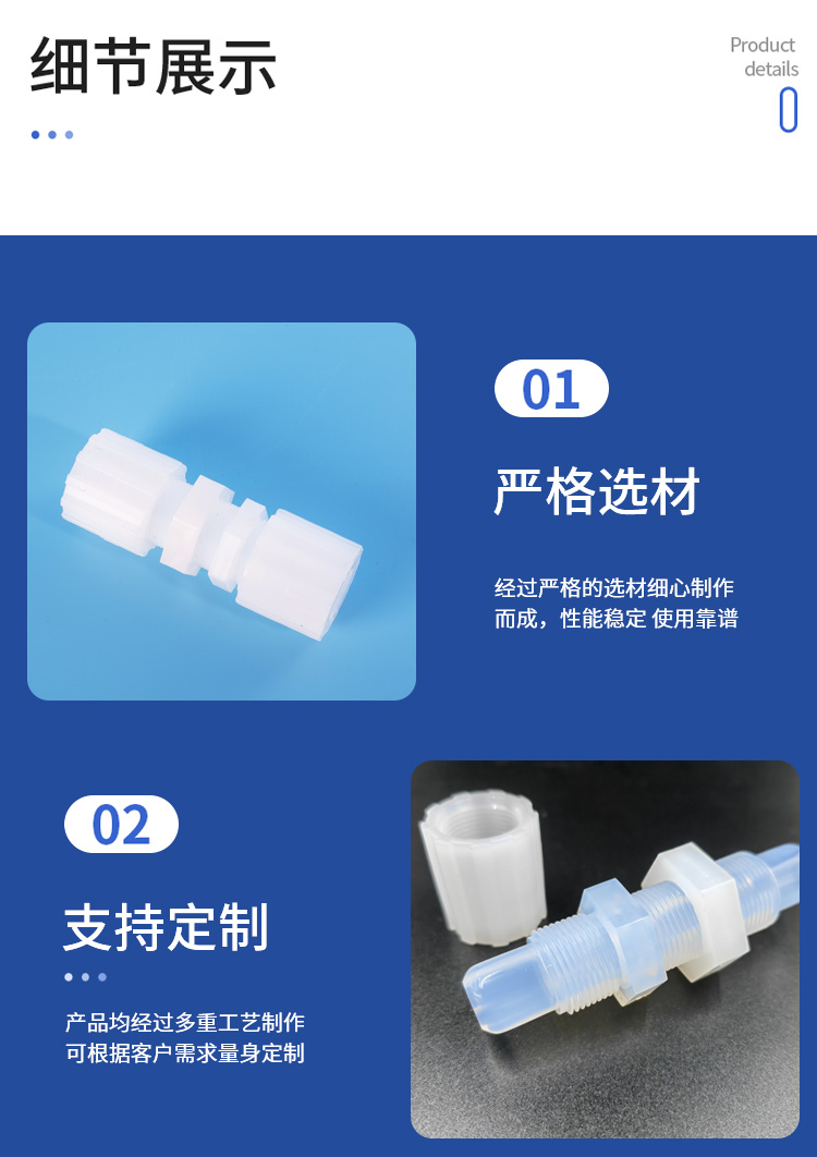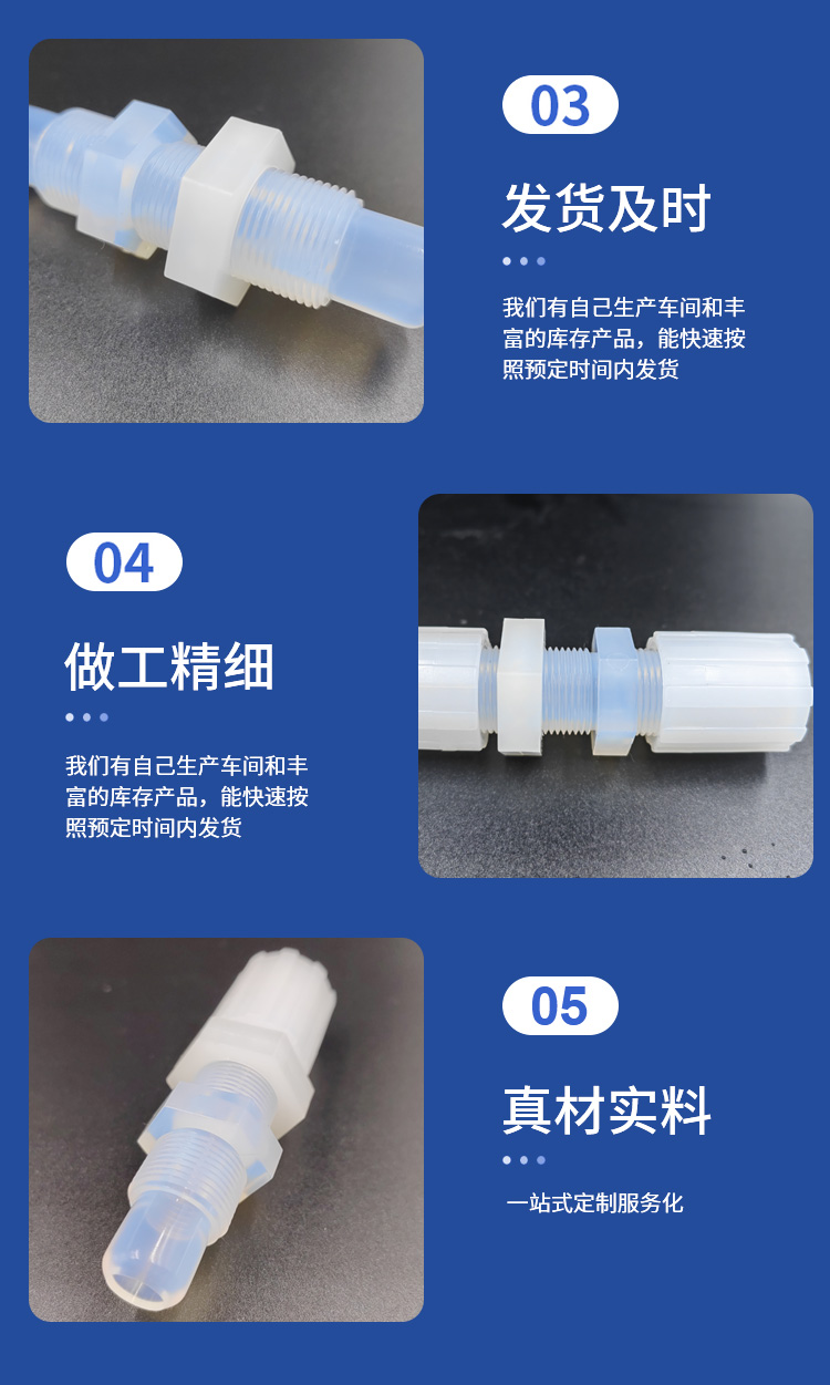 | PFA穿板直通 可选材质 PTFE/PVDF接头 用心选材 金沐霖 是否支持加工定制 | 是 | ||