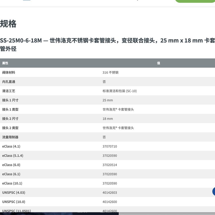 | 订货号 | SS-25M0-6-18M | ||