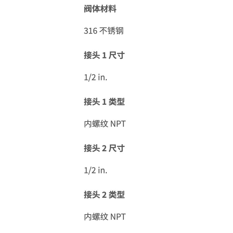 | 接头 1 类型 | 内螺纹 NPT | ||