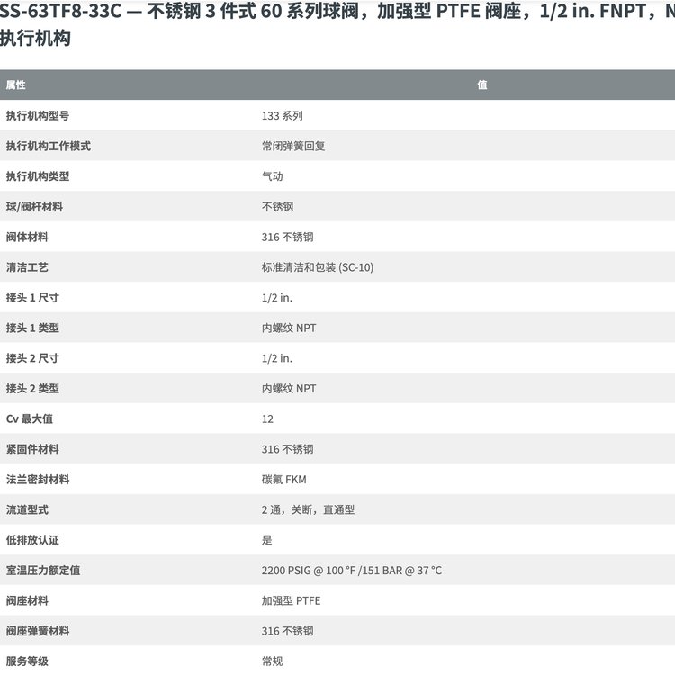| 功能用途 | 3 件式工艺\/仪表 60 系列球阀采用独特的锥形碟片弹簧加压阀座;活载两件式 V 形阀杆填料;和三件式摆出设计,专为实现高可靠性和低维护性而设计。 | ||