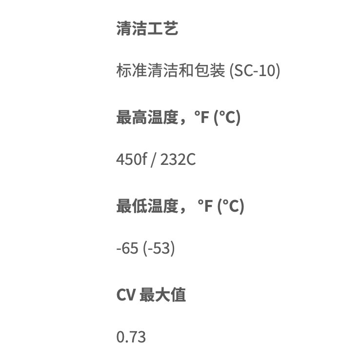 | 最高温度压力额定值 | 600°F @ 3130 PSIG \/315°C @ 215 BAR | ||
