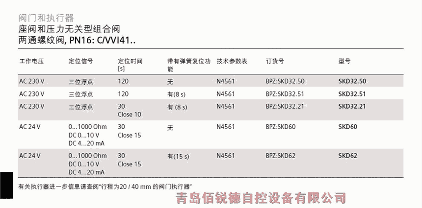 西门子执行器SKB62 SKC62 SKB60 SKC60用于西门子二通阀和三通阀 VVF... 和 VXF... 系列型号的阀门执行器,驱动行程为 20 mm 或 40 mm 。