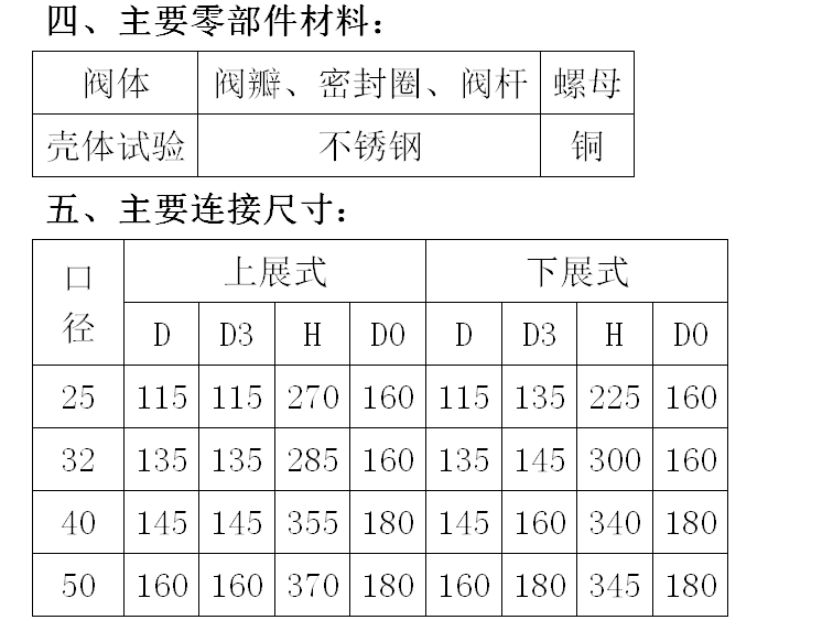 保温放料阀 主要零件材料