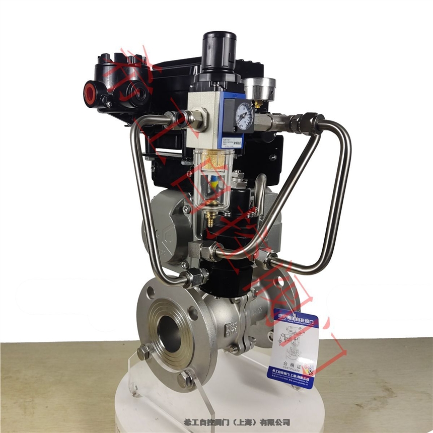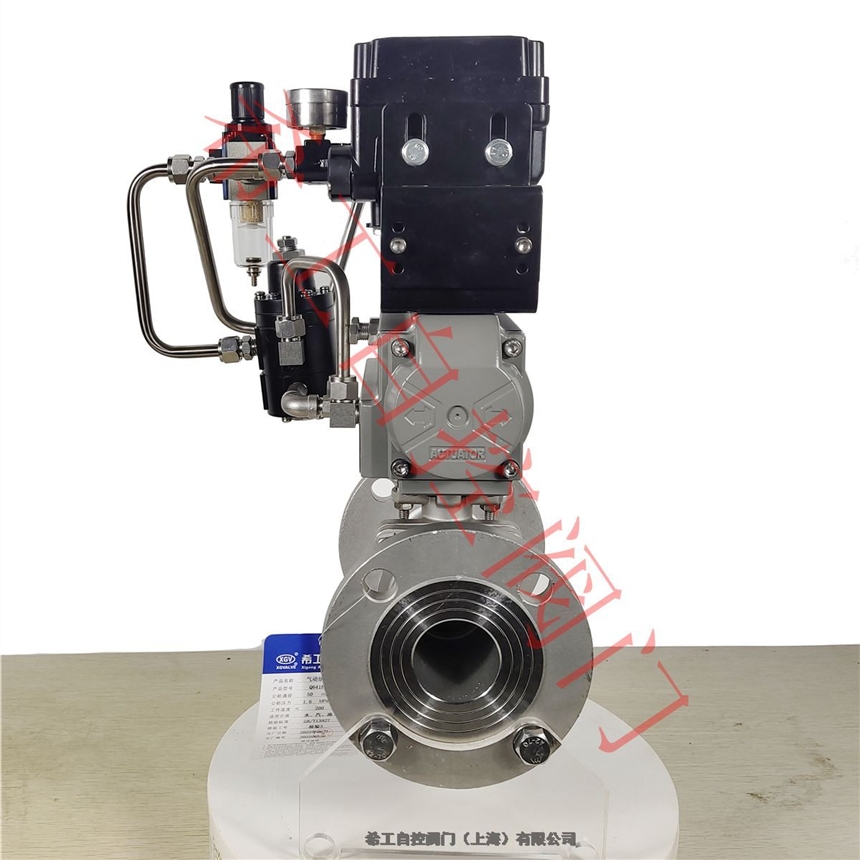 Q641F-16P 气动三断保位阀 不锈钢气动法兰球阀 断气断电保位阀 气动快速切断阀