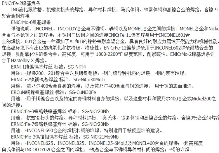 | 类型 | 镍基焊条 | ||