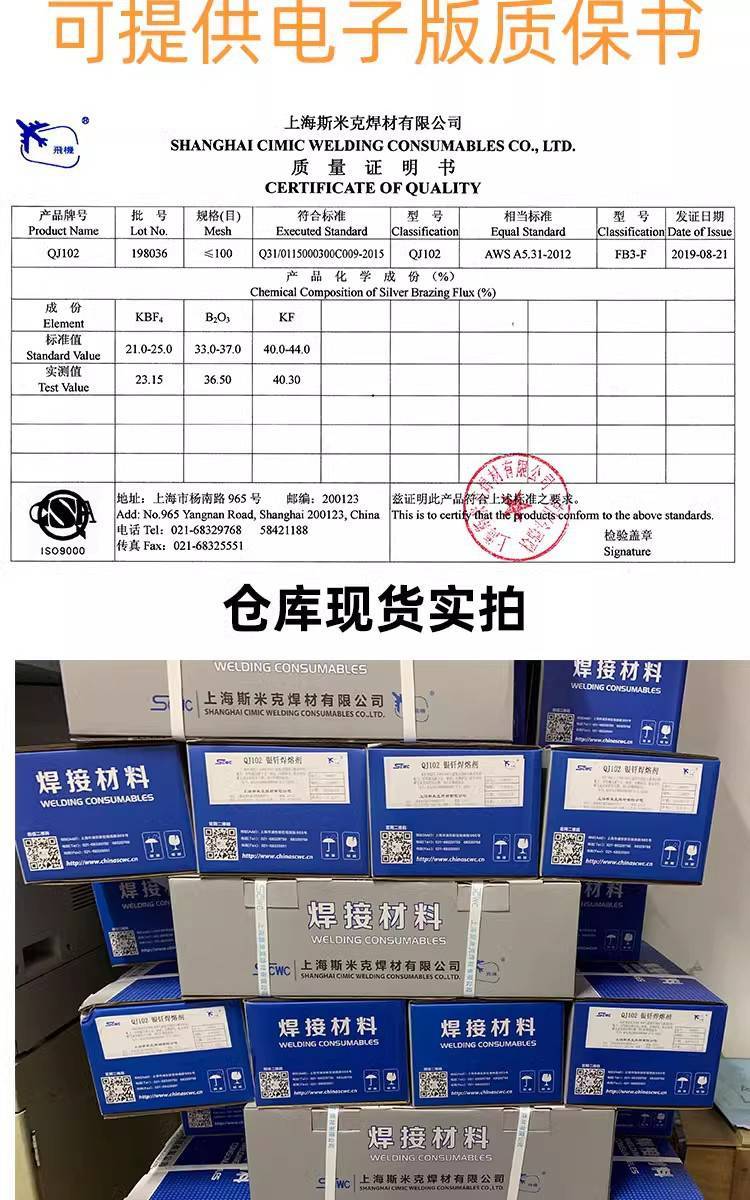 正品上海斯米克飞机牌QJ102银钎焊熔剂银焊粉助焊剂500克罐装