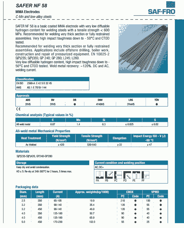 SAFER NF 58法国沙福焊条E7018-1 H4碳钢焊条