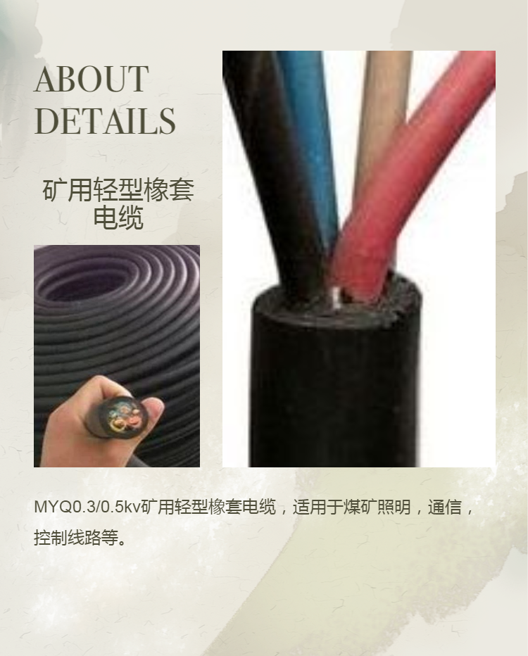 | 银顺牌矿用轻型橡套电缆 MYQ 0.3/0.5kv阻燃防爆照明通讯橡套线 用途 | 照明 | ||