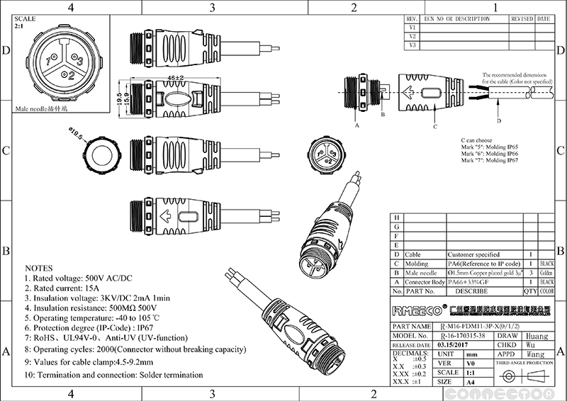 | 连接器类型 | 圆形线缆 | ||