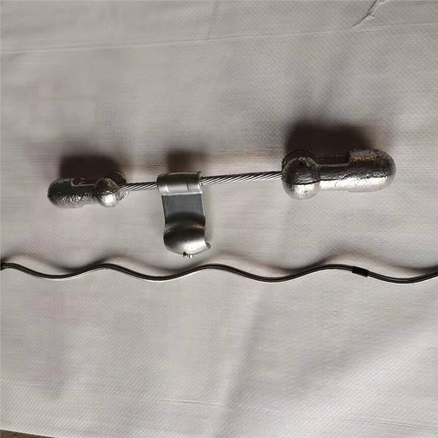 架空电力线路受风、冰、低温等气象条件的作用,使线路产生振动和动舞。振动频率较高而振幅很小,风振动使架空线在悬点处反复被拗折,引起材料疲劳,最后导致断股、断线事故。舞动的频率很低,而振幅却很大,很容易引起相间闪络,造成线路跳闸、停电或烧伤导线等严重事故。防震锤只是一段铁棒。由于它加挂在线路塔杆悬点处,以吸收或减弱振动能量,改变线路摇摆频率,防止线路的振动或舞动。