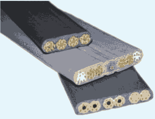 电缆采用新型耐寒柔性专用外护套,可在-15度低温下保持柔软,由于电缆自身的重量以及所需承受的张力,在大长度悬挂事用时,其电缆的结构须做特殊设计。电缆采用高强度航空镀锌钢丝承载,延长了使用寿命。