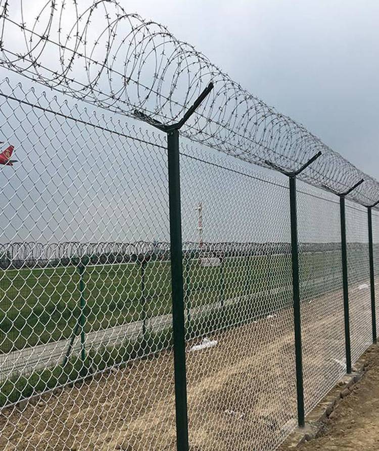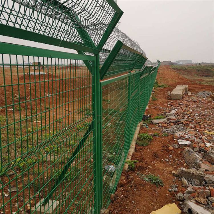 机场隔离护栏网 边境线金属隔离隔离网 防攀爬围栏网的特点是:美观实用,安全性高,抗攀爬能力强, 性能强,易于维护,使用方便,安装方便等。机场围网通常用于机场,军事基地, 和其他安全场所。