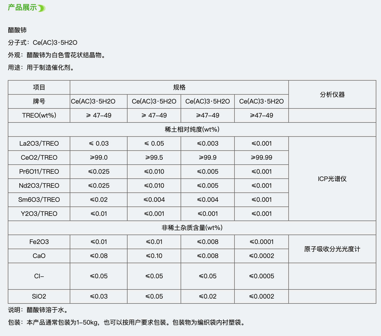 产品名称醋酸铈