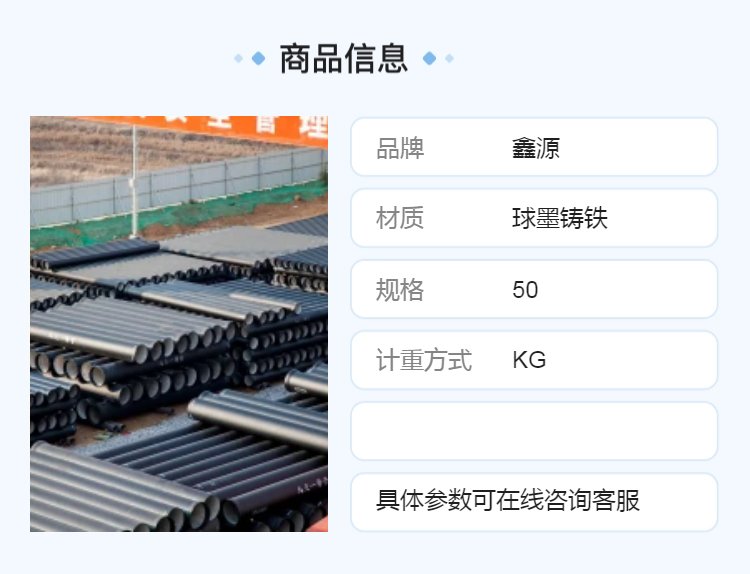 | 产品名 | 球墨铸铁管 | ||