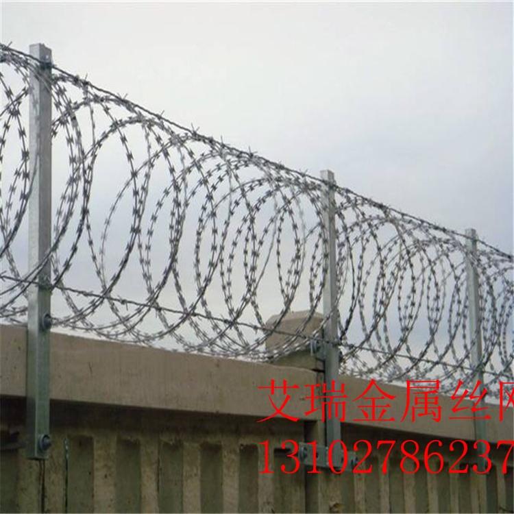 制造及特点:钢丝为芯丝,将冲压好的刀片包裹在芯丝上,一次制成。具有极强的防护能力和优秀的恐吓能力,安装方便,寿命长。它分为直线型、交叉型、直线盘绕型、交叉盘绕型和十字交叉型。