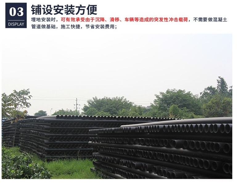 3.重量轻,安装方便,管道连接采用电热熔接头,抗轴向拉伸能力强,连接技术成熟可靠,管件品种规格