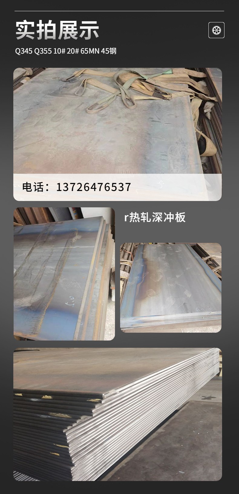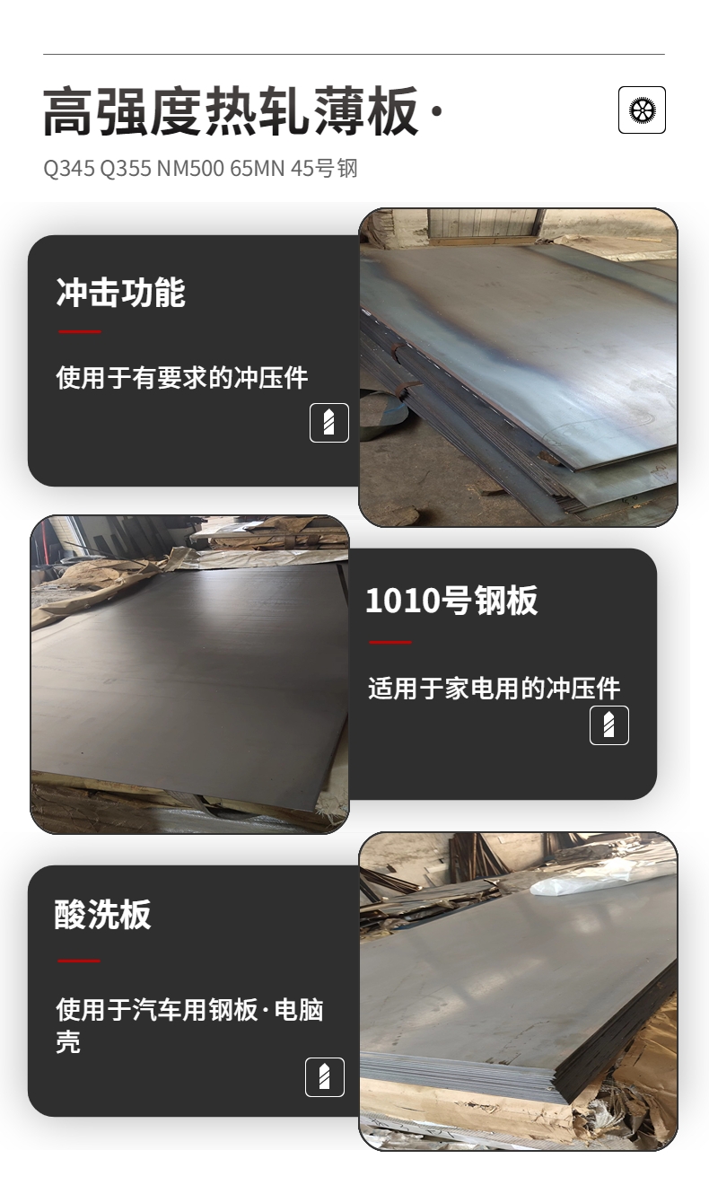 四、常规零售牌号:低合金高强度结构钢Q345A、Q345B、Q345C、Q345D、Q345E.碳素结构:Q235A、Q235B、Q235C、Q235D、优质碳素结构用钢:10#、20# 、35#、40#、45#、50#、 60#、65#、70#、优质碳素结构用钢:10号、20号、35号、40号、45号、50号、60号、65号、70号、合金结构钢:20CrMo、25CrMo、30CrMo、35CrMo、40CrMo、42CrMo、 38CrMoAl、10CrMoAl、低淬透性渗碳钢:20Cr、35Cr、40Cr、42Cr、50Cr、70Cr、弹簧钢板:60Si2Mn、60Si2Mn-A、65Si2Mn、50CrMn、50CrMn-A、16锰、20锰、25锰30锰、 35锰、40锰、50锰、65锰、50锰、75锰..
