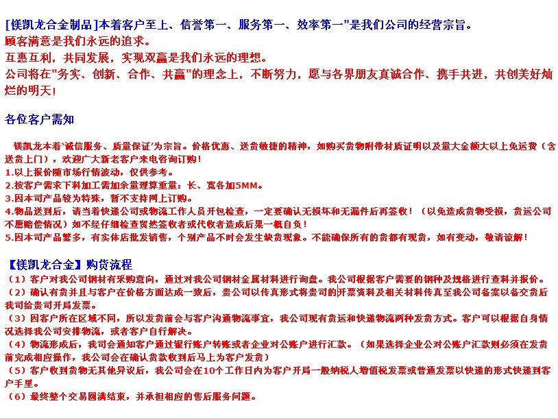 镁凯龙合金:经营不锈钢,不锈钢带,不锈钢棒,不锈钢六角棒,不锈钢板,不锈钢四方棒,不锈钢线,不锈钢管材,热轧不锈钢圆棒 冷拉精元不锈钢圆棒 黑皮不锈钢棒 毛胚不锈钢棒 精密研磨圆棒 研磨光亮圆棒 精磨圆棒,热轧不锈钢板 冷轧不锈钢板 不锈钢厚板 不锈钢板 超厚不锈钢板 不锈钢薄板 不锈钢中厚板代客分条,代客切割,代客剪板,国内外不锈钢牌号规格齐全,日本住友、日本新日铁、台湾中钢,宝钢,德国克虏伯,太钢,抚顺产地,国标高精度不锈钢。
