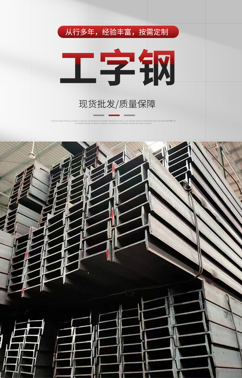 工字钢分为普通工字钢和轻型工字钢两种。普通工字钢以符号"I"后加截面高度表示,如I16;轻型工字钢以"QI"表示。在建筑中常用于梁、柱等承重结构,在机械制造中用于设备支架和框架?。