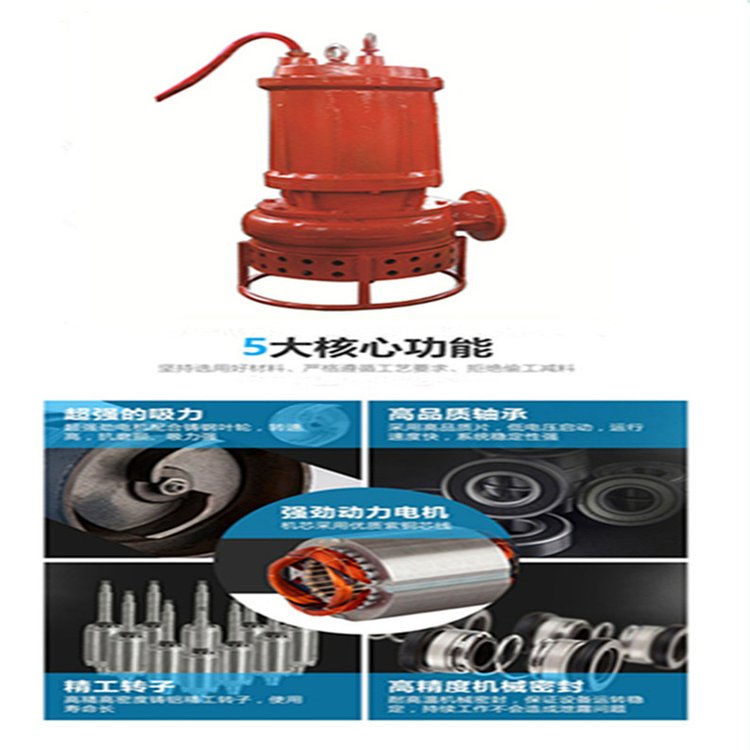 3.叶轮,搅拌叶轮等主要流通部件均采用高铬合金制成,具有耐磨,耐腐蚀,无堵塞,排水能力强等特点,可以有效地通过大固体。