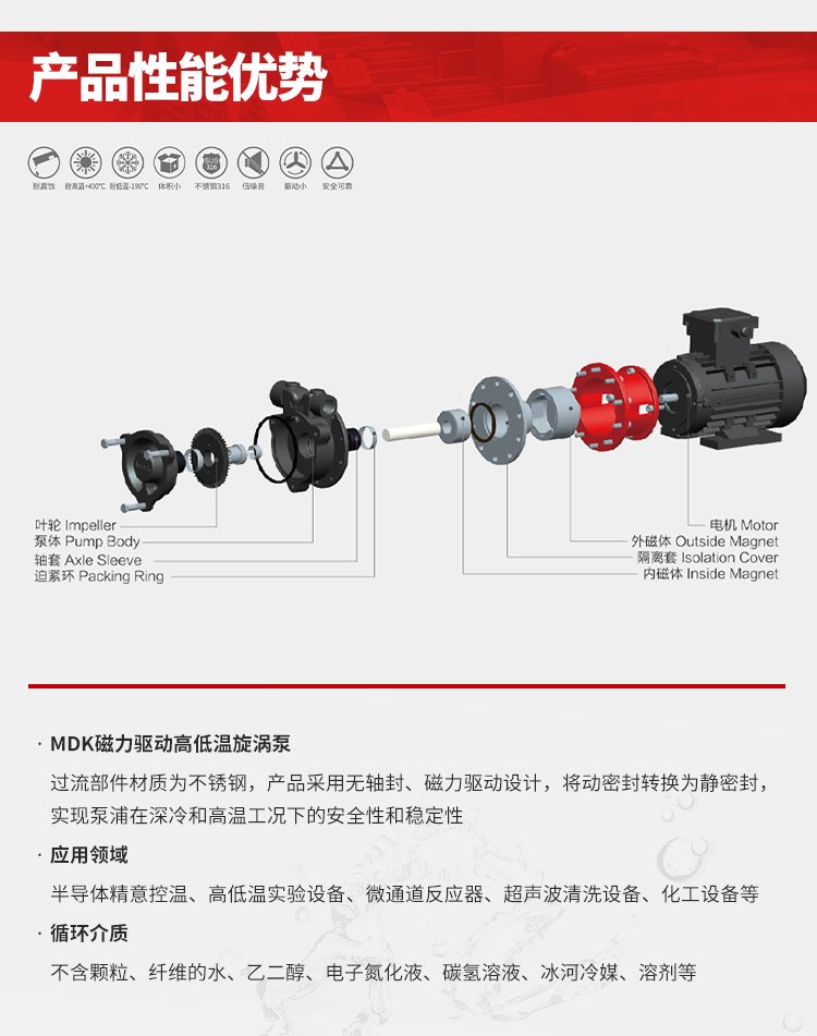 不锈钢旋涡磁力泵-MDK奥兰克气液雾化加压混合用于半导体精意控温