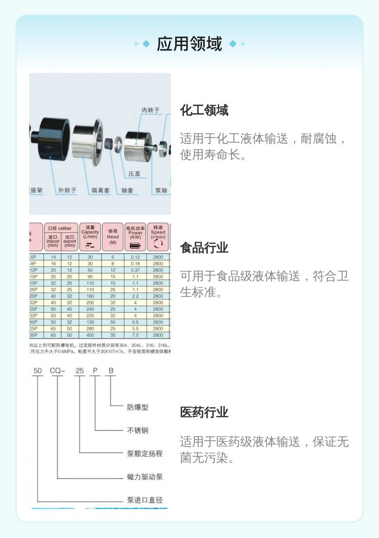 | 适用范围 | 广泛,适用于多种液体输送 | ||