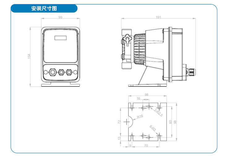 ● 外壳材质为玻璃纤维PP, 防护等级为IP65