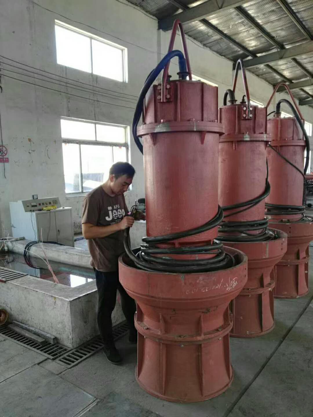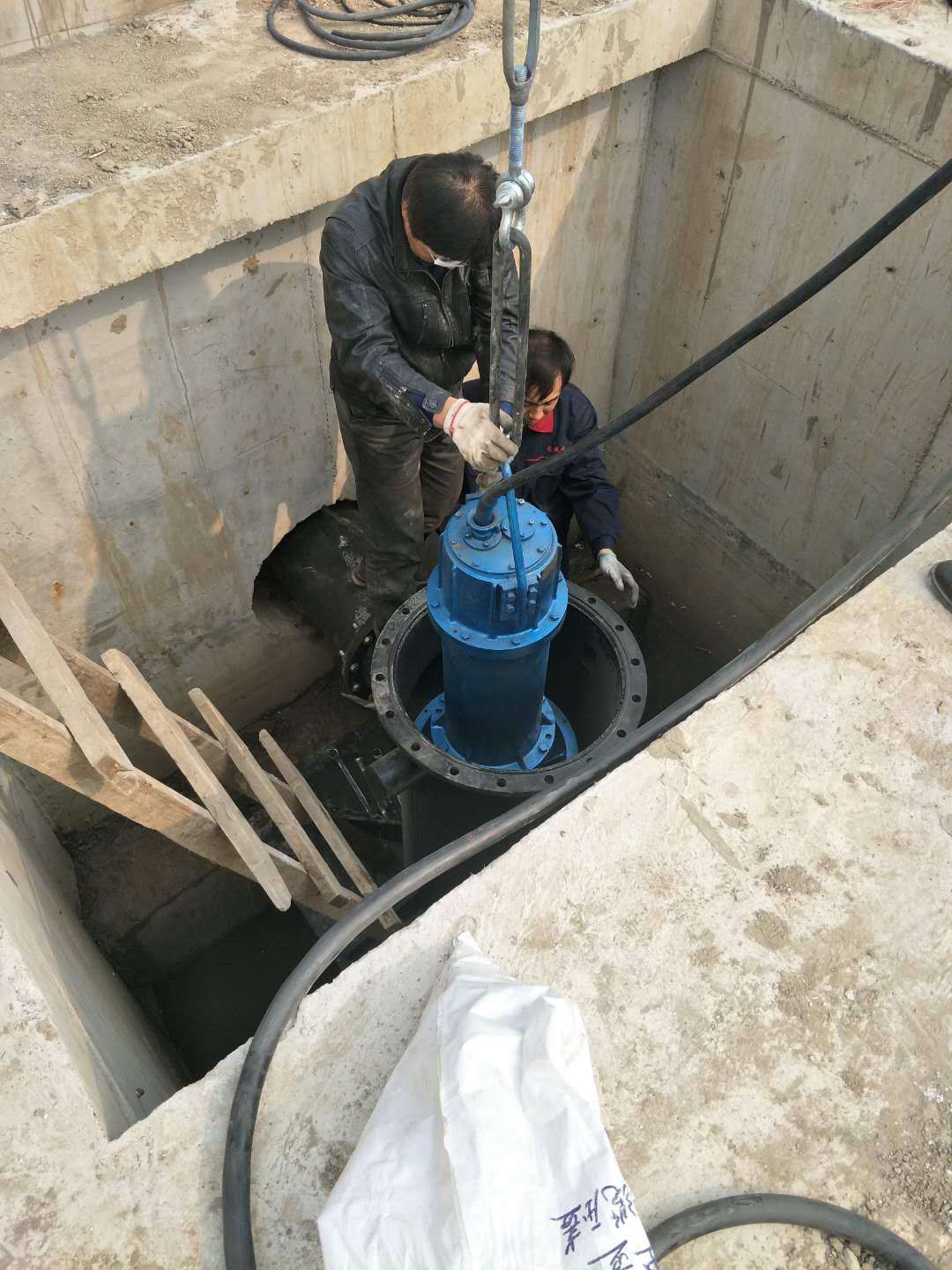 采用该型潜水电泵是解决水位涨落较大的沿江、湖泊地区防洪问题***彻底的办法,省去了传统立式轴流泵机泵间的长轴和中间轴承,使机组运行更为稳定可靠。