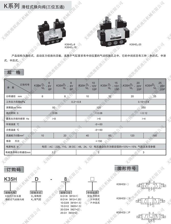 K35HD2-25,K35HD2-25Y,K35HD2-25P,三位五通电磁阀,生产厂家