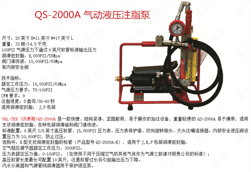 美国沃泰斯VAL-TEX QS-2000A气动液压注脂泵