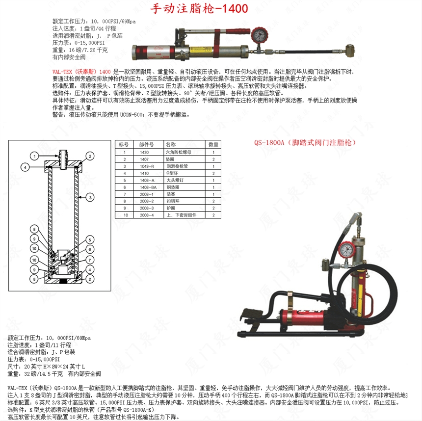 美国沃泰斯VAL-TEX脚踏式阀门注脂枪QS-1800A