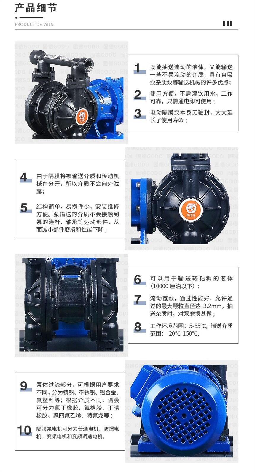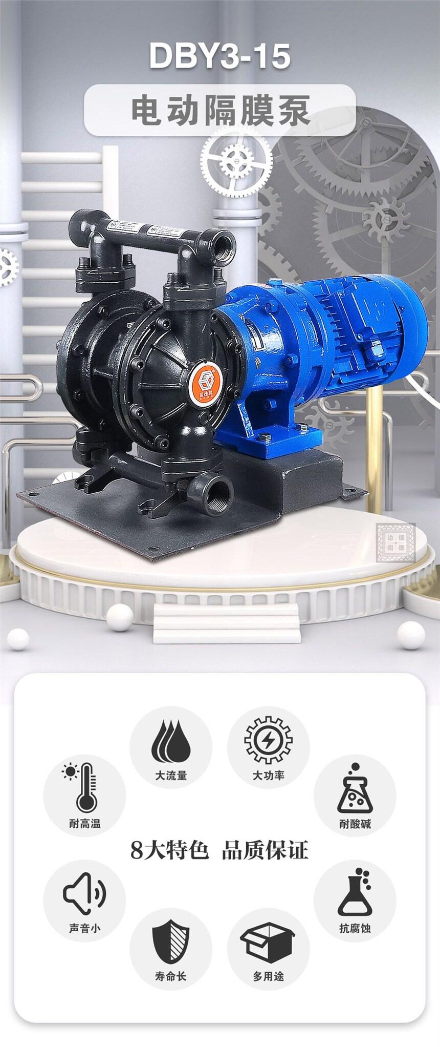 铸钢材质电动隔膜泵,安全防爆可空转自吸启动噪音小出口压力4kgDBY3-15GTFF