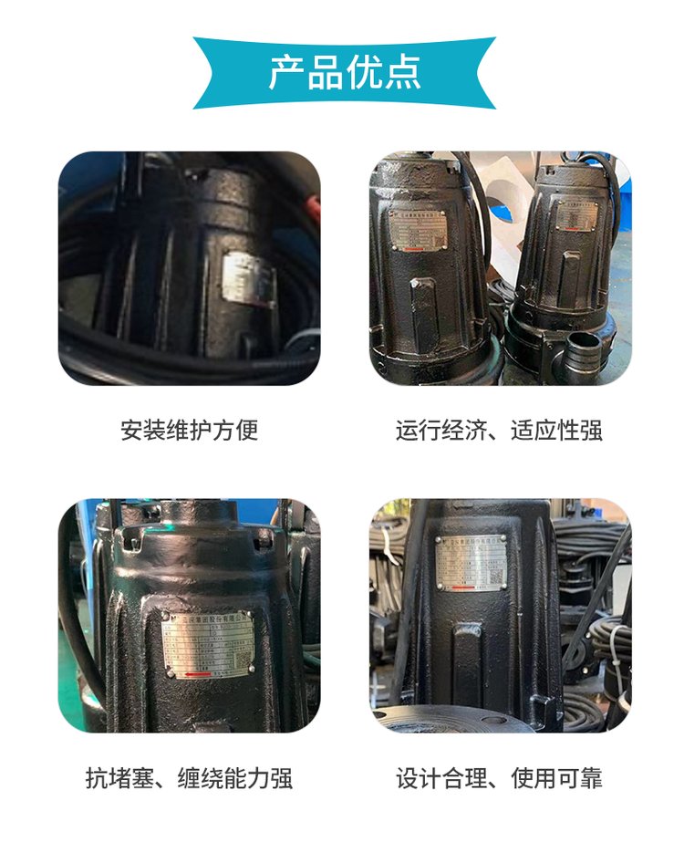 1、结构紧凑、占地面积小。潜水排污泵由于潜入液体内工作,因此可直接安装于污水池内,无需建造专门的泵房用来安装泵及机,可以节省大量的土地及基建费用。