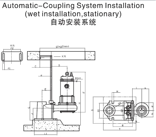 每一台泵可配有固定在池底的着脱,泵能顺利地沿导轨自由滑动,并通过引导板等部件自动与着脱装置耦合,耦合牢固可靠。