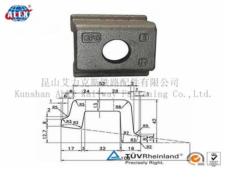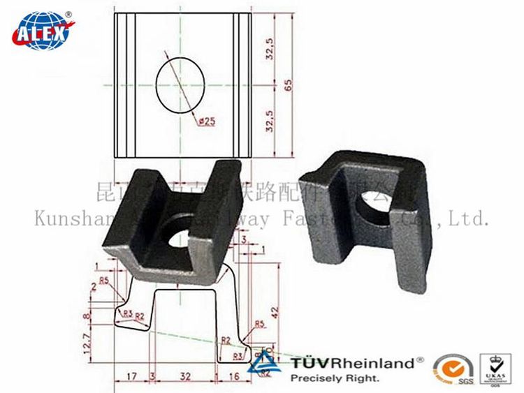 昆山艾力克斯铁路配件有限公司生产国内外标准各种轨道扣板压板,主要是模锻生产工艺和铸造生产工艺两种。根据客户不同的要求定制生产。