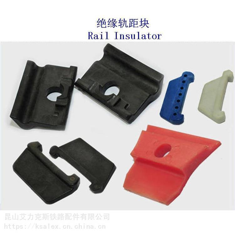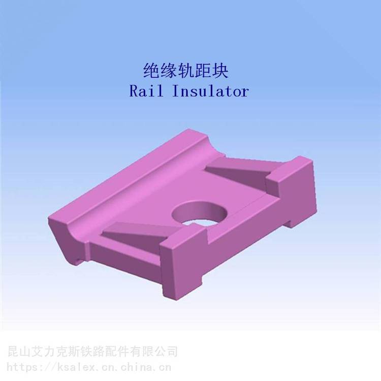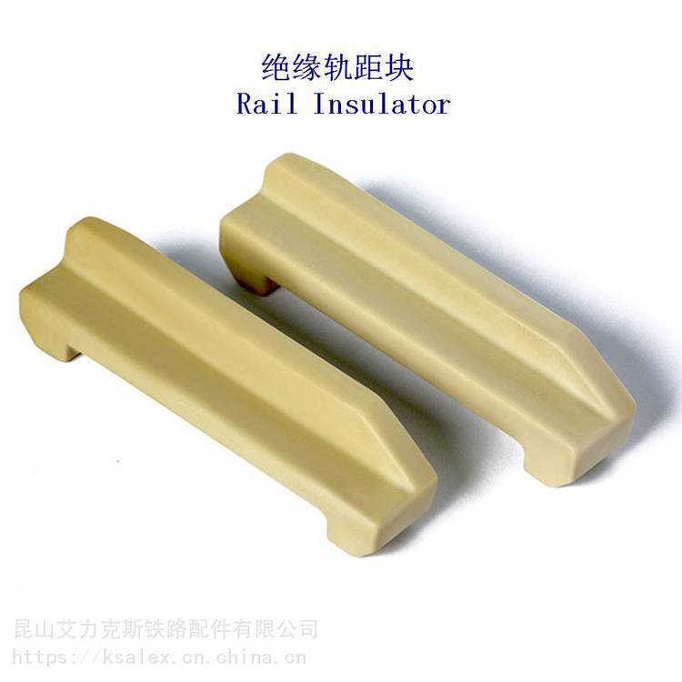 钢轨绝缘轨距挡块,该钢轨绝缘轨距挡块用于对钢轨进行绝缘和钢轨定位,使两根平行钢轨之间的距离稳定,列车运行平顺。