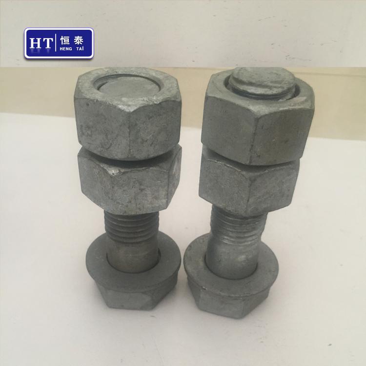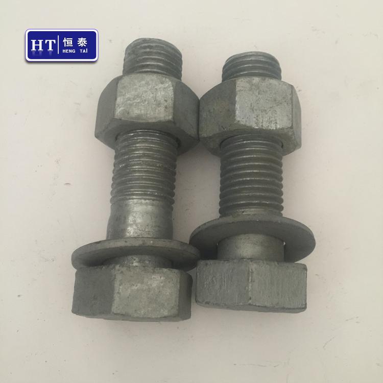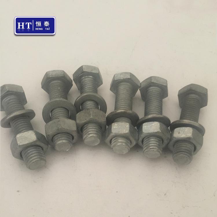 产品用途:热镀锌螺栓的镀层较厚,一般为30-60微米,镀层防腐能力较高。适合于户外工作的钢铁制件,如高速公路围栏、电力铁塔、大尺寸紧固件等较为“粗糙”的工件的长期防锈。较早的铁质自来水管也是热镀锌的。另外,热镀锌螺栓因着高强度和耐腐蚀性,越来越多成为电力铁塔、信号塔、公路护栏首选螺栓