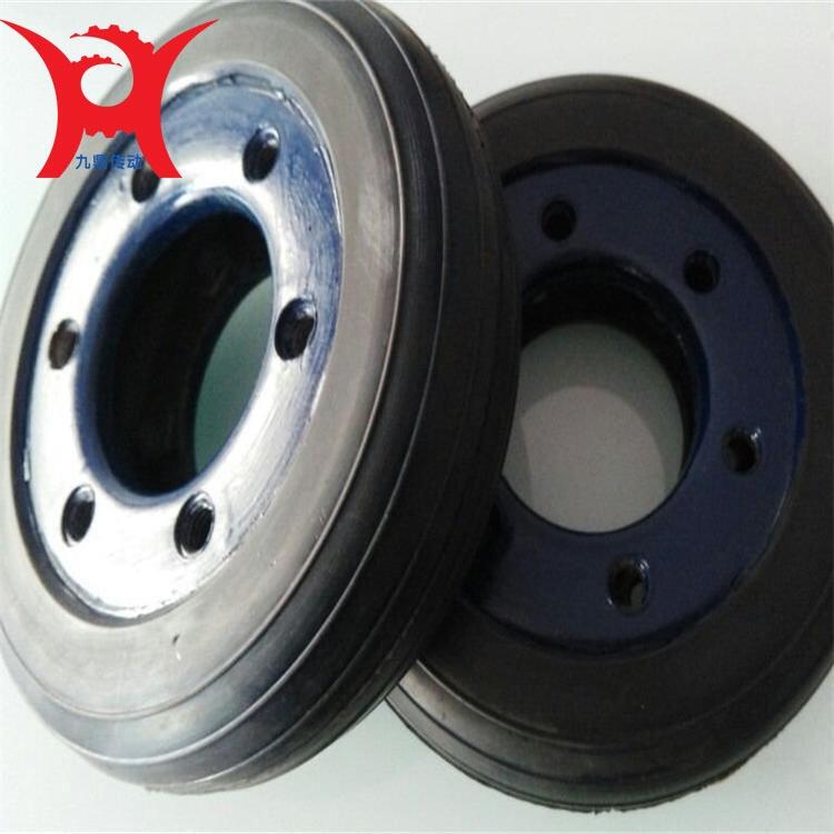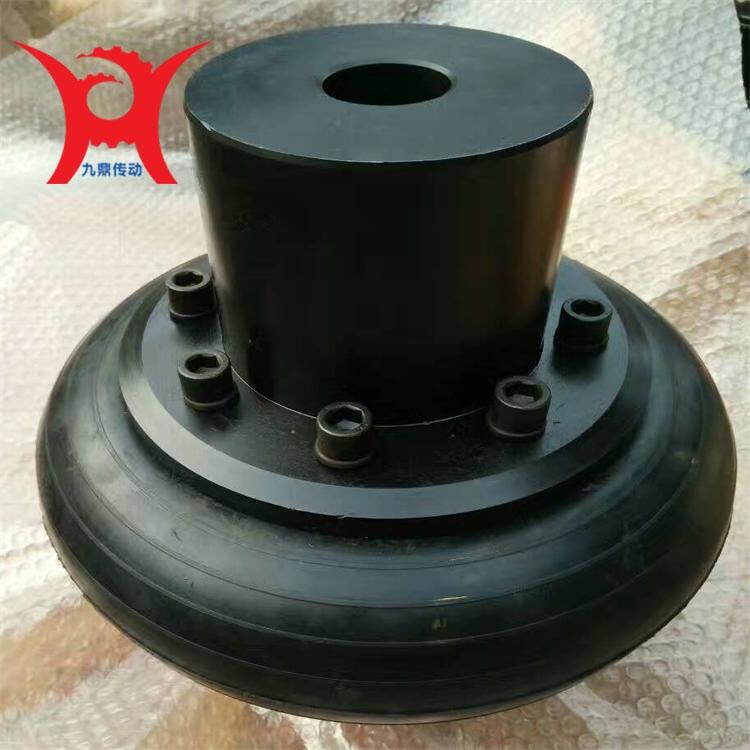 ? ? ?轮胎联轴器轮胎体是轮胎联轴器必要的备件之一,相应的分为UL、LA、LB轮胎体。轮胎式联轴器分为凸型和凹型两大类,凸型又分为带骨架整体式、无骨整体式和径向切口式三种。轮胎环内侧用硫化方法与钢质骨架粘接成一体,骨架上的螺栓孔处焊有螺母。装配时用螺栓与两半联轴器的凸缘连接,依靠拧紧螺栓使轮胎与凸缘端面之间产生的摩擦力来传递转矩,轮胎环工作时发生扭转剪切变形,故轮胎联轴器具有很高的弹性,补偿两轴相对位移的能力较大,并有良好的阻尼,而且结构简单、不需润滑、装拆和维护都比较方便。其缺点是承载能力不高、外形尺寸较大,随着两轴相对扭转角的增加使轮胎外形扭歪,轴向尺寸略有减小,将在两轴上产生较大的附加轴向力,使轴承负载加大而降低寿命。轮胎联轴器高速运转时,轮胎外缘由于离心力的作用而向外扩张,将进一步增大附加轴向力。为此,在安装联轴器时应采取措施,使轮胎中的应力方向与工作时产生的应力方向相反,以抵消部分附加轴向力,达到改善联轴器和两轴承的工和条件。