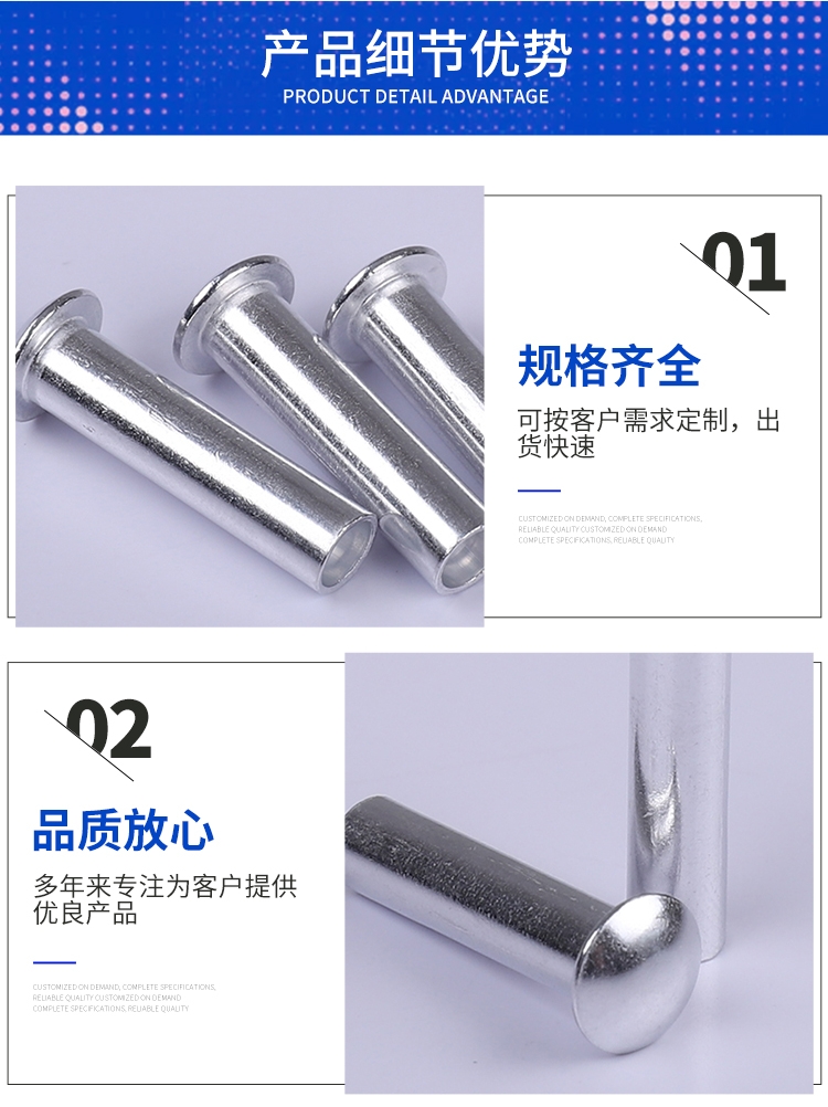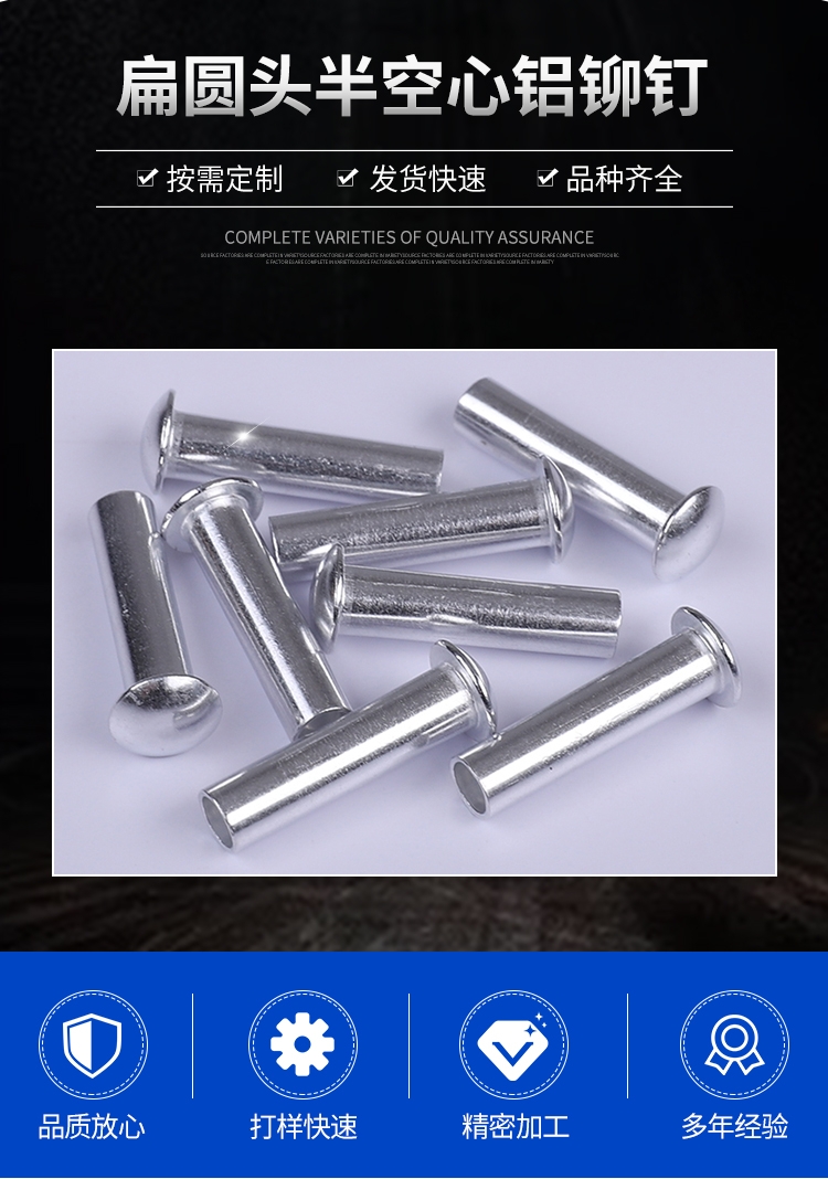 扁圆头半空心铝铆钉制造半空心铝铆钉制造铝铆钉厂半空心铝铆钉厂