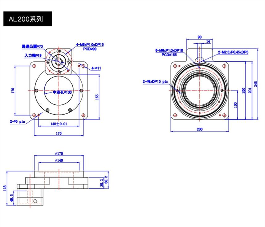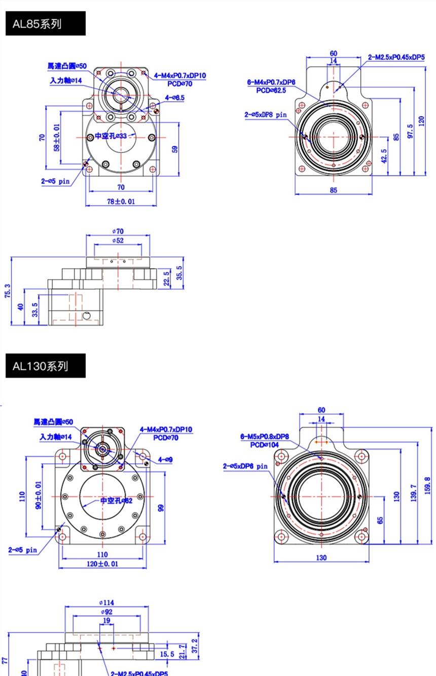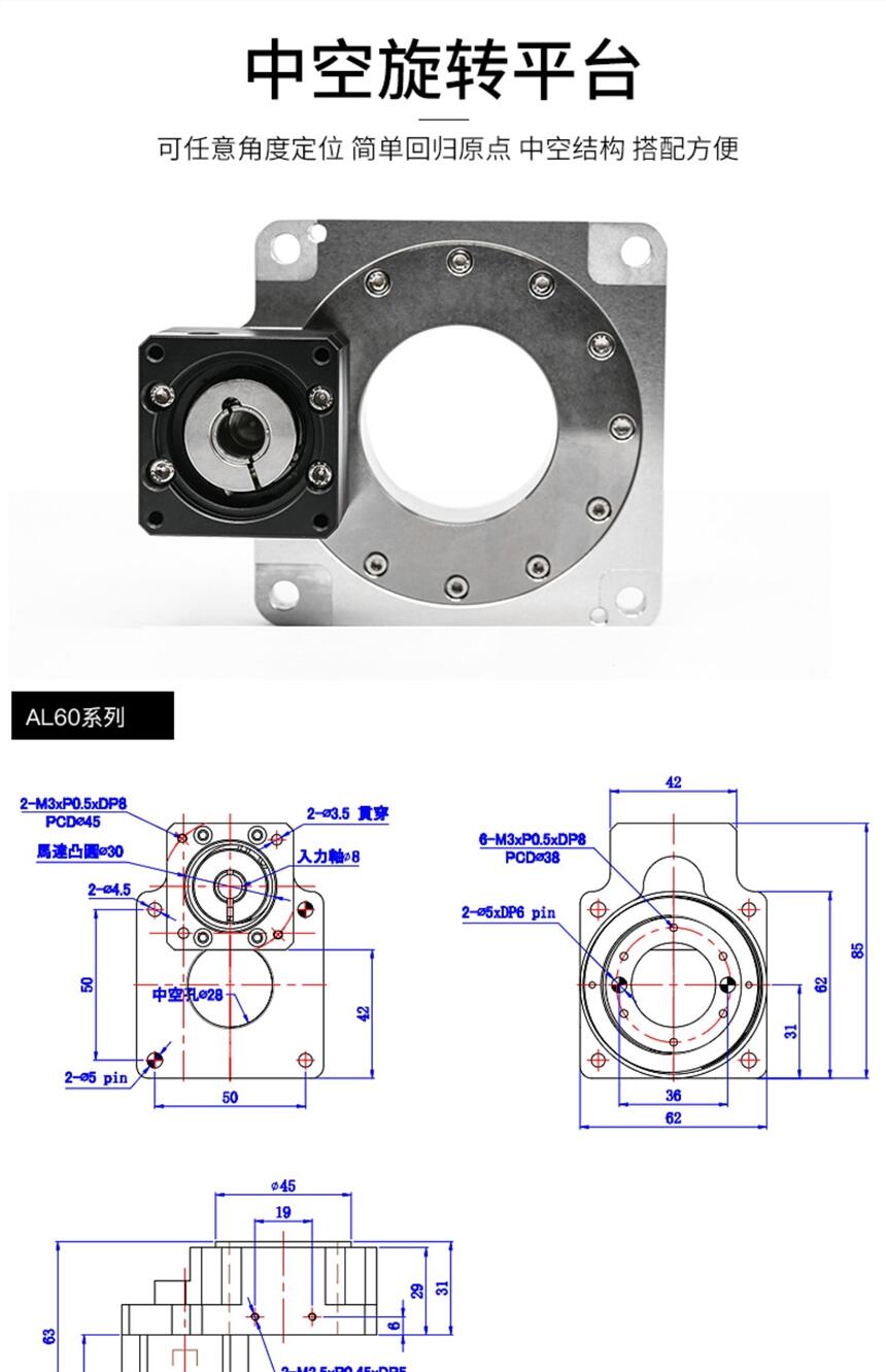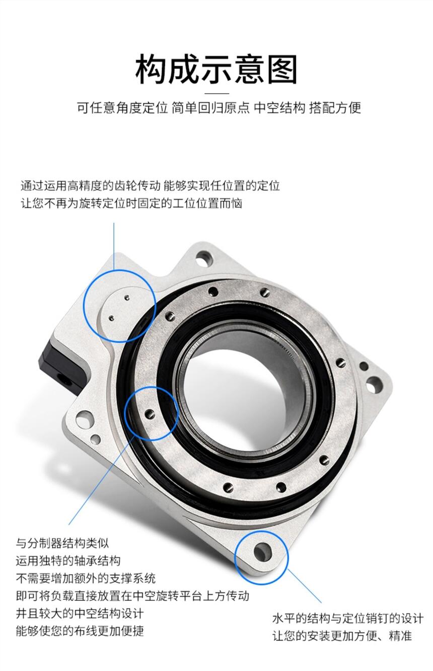 钛合金钢材质中空旋转平台130伺服电机DD马达60 85 200凸轮分割器